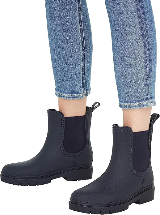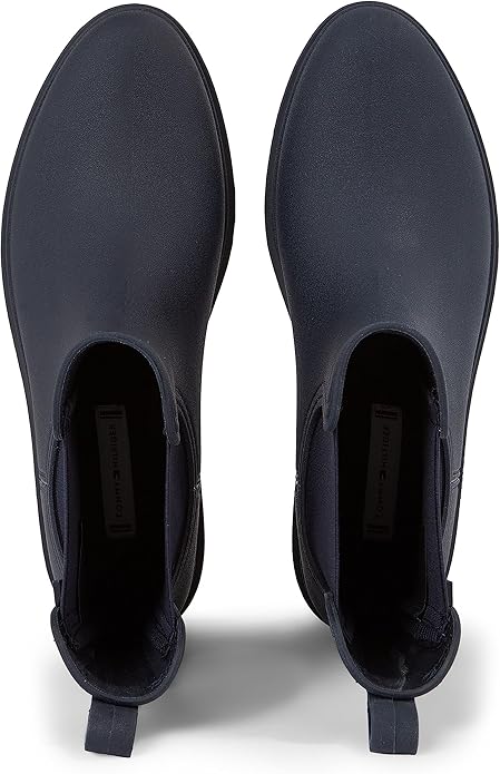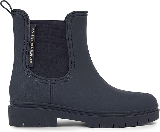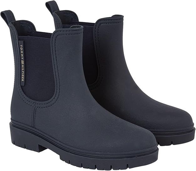 Estos botines Rainbootie de Tommy Hilfiger en azul marino son el complemento perfecto para los días de lluvia. Fabricados con un diseño impermeable y elegante, te proporcionan una protección óptima contra el agua, manteniendo tus pies secos. Su estilo moderno, adornado con el icónico logo de Tommy Hilfiger, añade un toque de distinción a cualquier conjunto casual. Con una suela antideslizante, son ideales para caminar con seguridad en superficies mojadas.